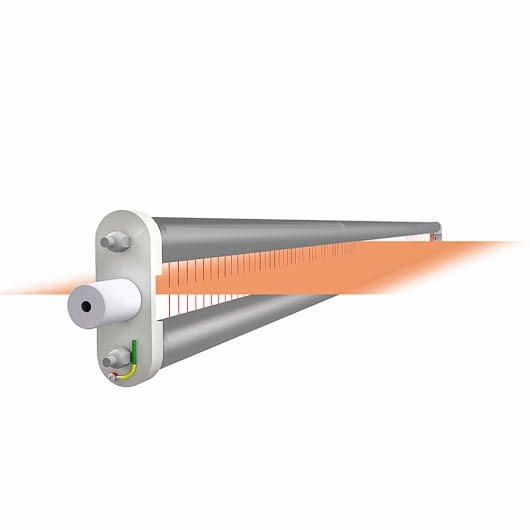 The fabric width sensor mod. W-TEC is the sensor for continuous reading of the width of the fabric that the machine is processing, simple to install even on existing machinery, with reading optimized for transparent fabrics.