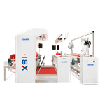 The super-compact automatic packaging completes the line and prepares the roll of fabric for simple yet optimal logistics management.