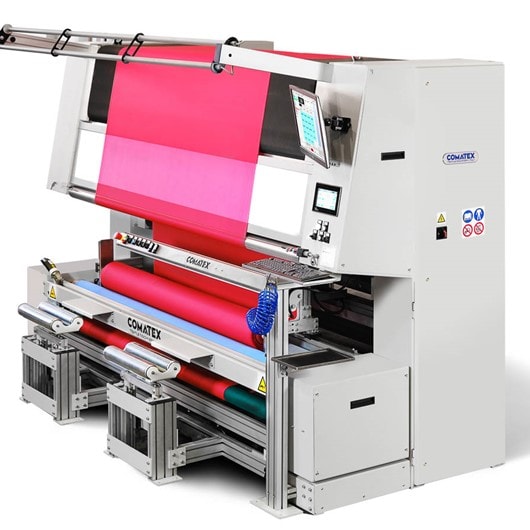 The machine is equipped with all edge alignment systems, as well as an innovative meter counter system, which allow it to produce high quality fabric rolls with excellent tension control.