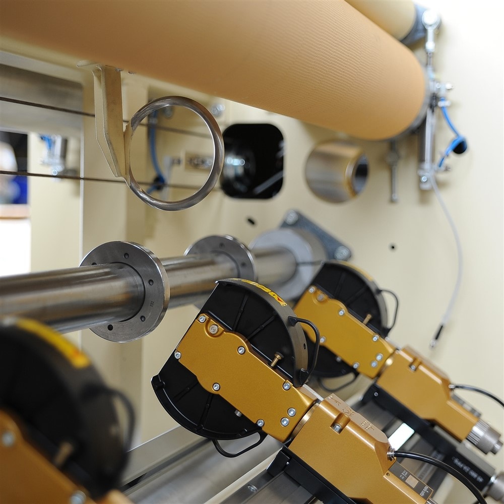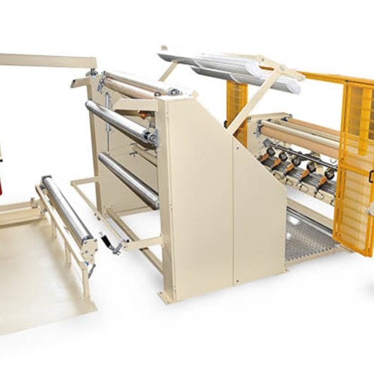 Edge alignment is automatic, in right, left, or centerline versions, or complete with “zetatore” for distributing the selvedge and avoiding the cone effect. The roll can be wound behind the operator tangentially on two rollers or axially on pneumatic axes.