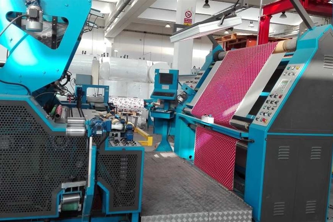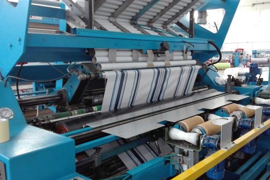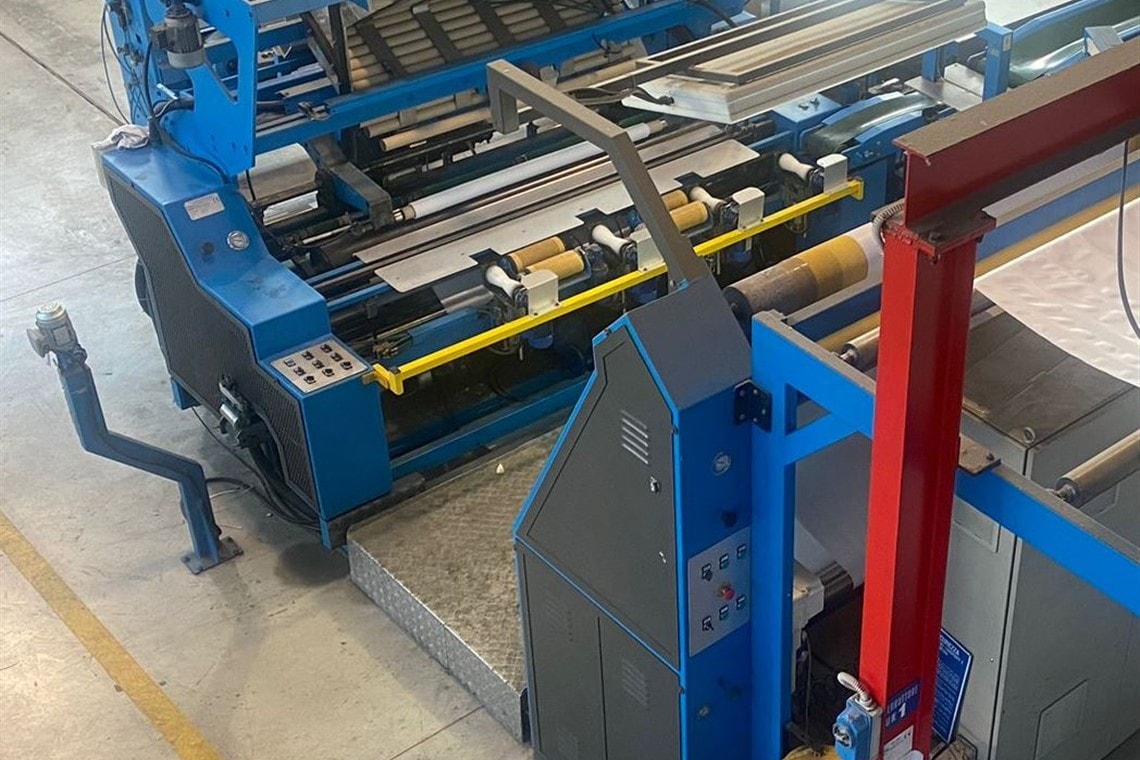 Machine constructed of sturdy metal, suitable for unwinding and rewinding rolls of calendered, extruded, laminated, and woven materials.