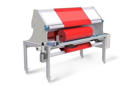 Il percorso molto breve e le paratie laterali permettono di riavvolgere il tessuto con il proprio allineamento.