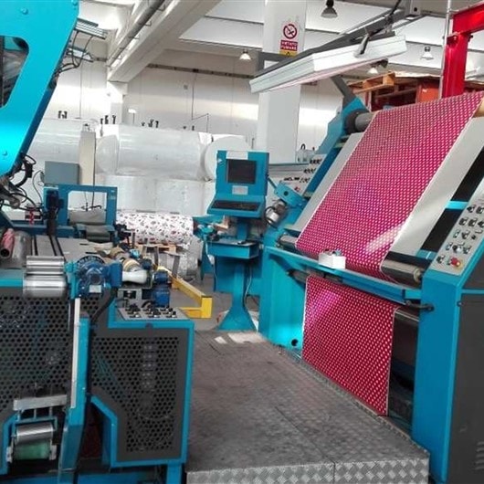 Macchina costruita in robusta carpenteria metallica , atta allo svolgimento e riavvolgimento in rotoli di materiali calandrati, estrusi , accoppiati e tessuti