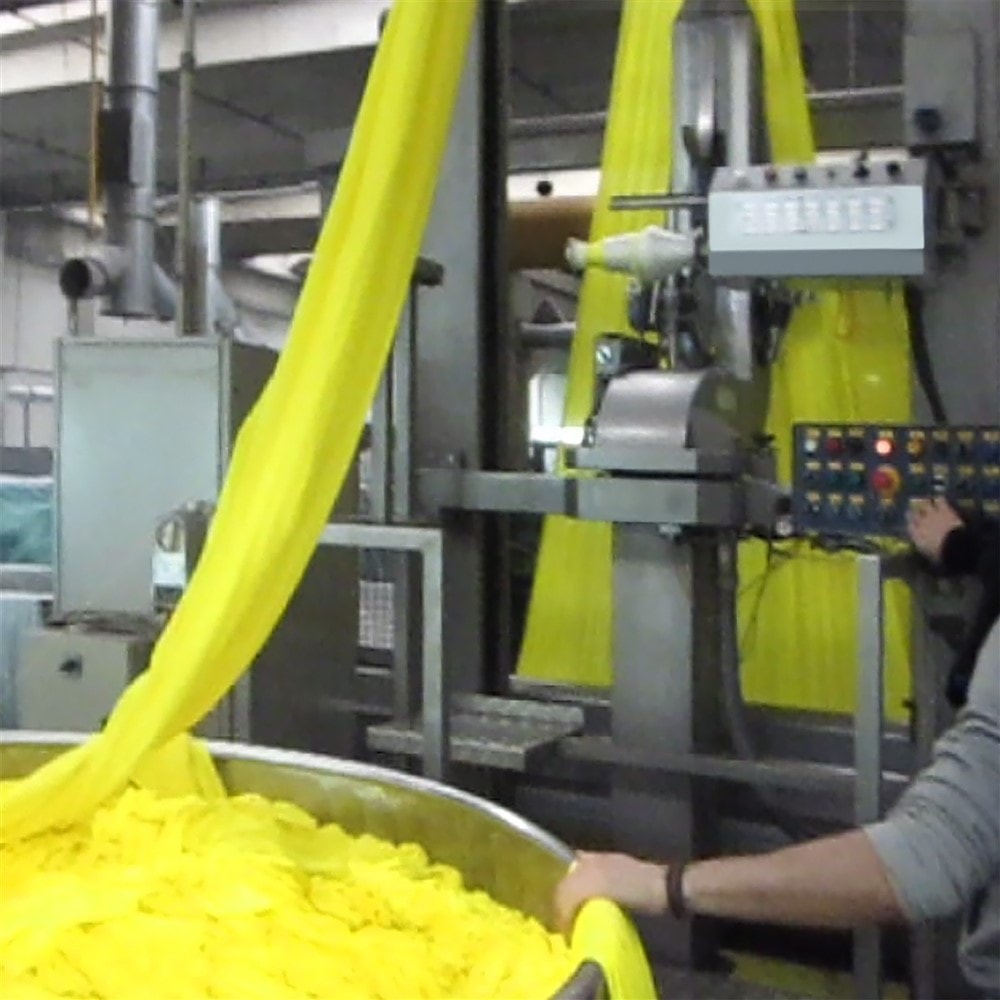 Grazie alla nostra macchina cucitrice in tubolare CX EVO è possibile fissare le cimosse arricciate una con l'altra e ripristinare lo stato del tessuto in forma tubolare (in corda) in modo da poter tingere uniformemente anche le cimosse molto arricciate
