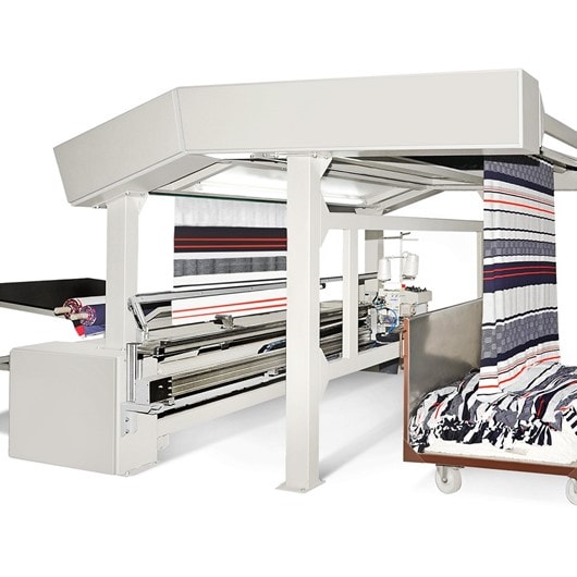 The machine mod. PRFL is the ideal line for those production lines that require a complete machine for the joining, preparation and quality control of big batches of plaited fabric with integrated relaxation.