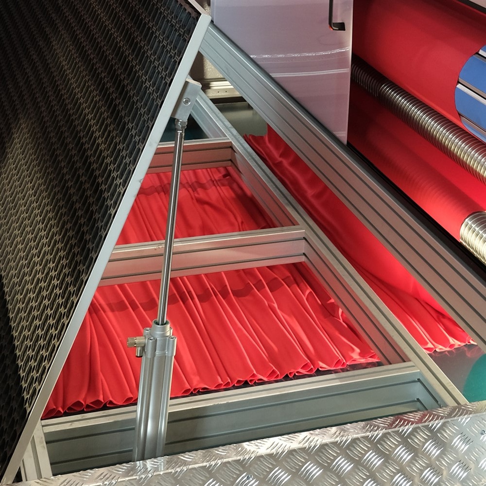 Lo svolgitore per rotoli di piccole dimensioni è il sistema ideale per lo svolgimento rapido e controllato di rotoli fino a ø40cm x 40kg. Lo svolgimento tangenziale permette al tessuto di cadere in maniera naturale sul nastro di accumulo e di rilassamento. Il nastro di accumulo, che viaggia ad una velocità inferiore rispetto alla linea, permette di rilassare il tessuto prima delle lavorazioni successive.