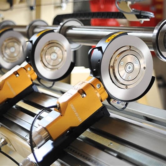L’unità di taglio modello SLT S è l’unità di taglio a forbice che COMATEX propone abitualmente per i macchinari di taglio e refilo per tessuti.