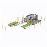 La macchina permette di imballare rotoli chiusi con nastro in continuo e senza la supervisione dell'operatore e pacchi di tessuto provenienti da linee di faldatura.