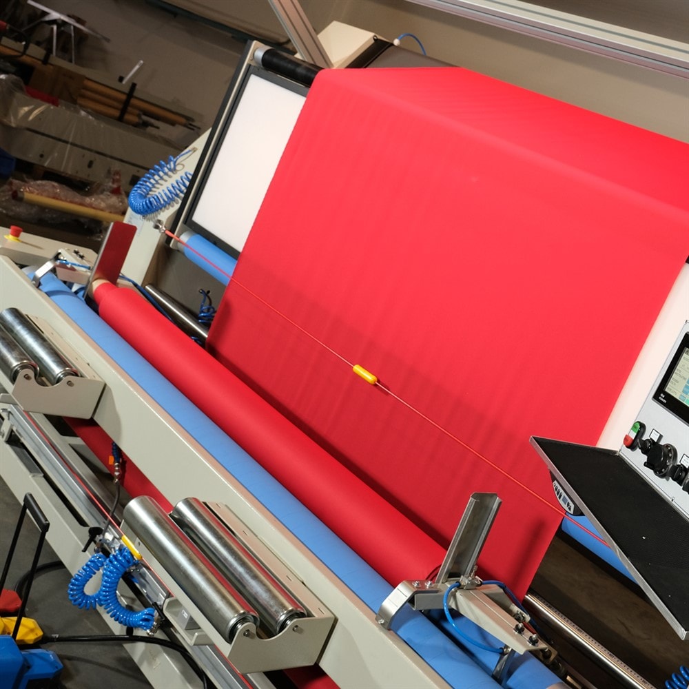 Le nostre verificatrici sono dotate di controlli della tensione del tessuto di precisione. I rulli che trasportano il tessuto sono dotati di inverter e regolatori che permettono all'operatore di avvolgere il tessuto con la tensione desiderata.