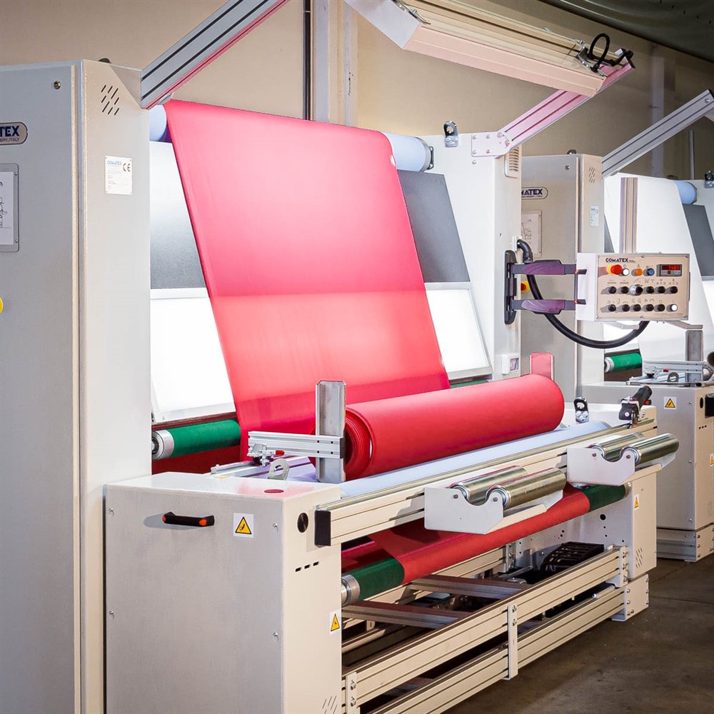Le nostre verificatrici sono dotate di controlli della tensione del tessuto di precisione. I rulli che trasportano il tessuto sono dotati di inverter e regolatori che permettono all'operatore di avvolgere il tessuto con la tensione desiderata.