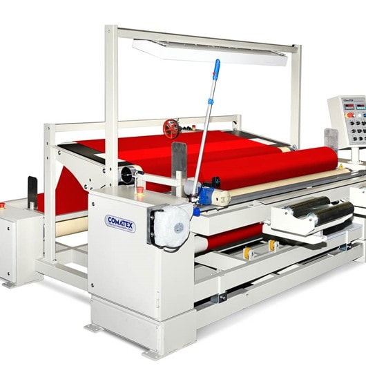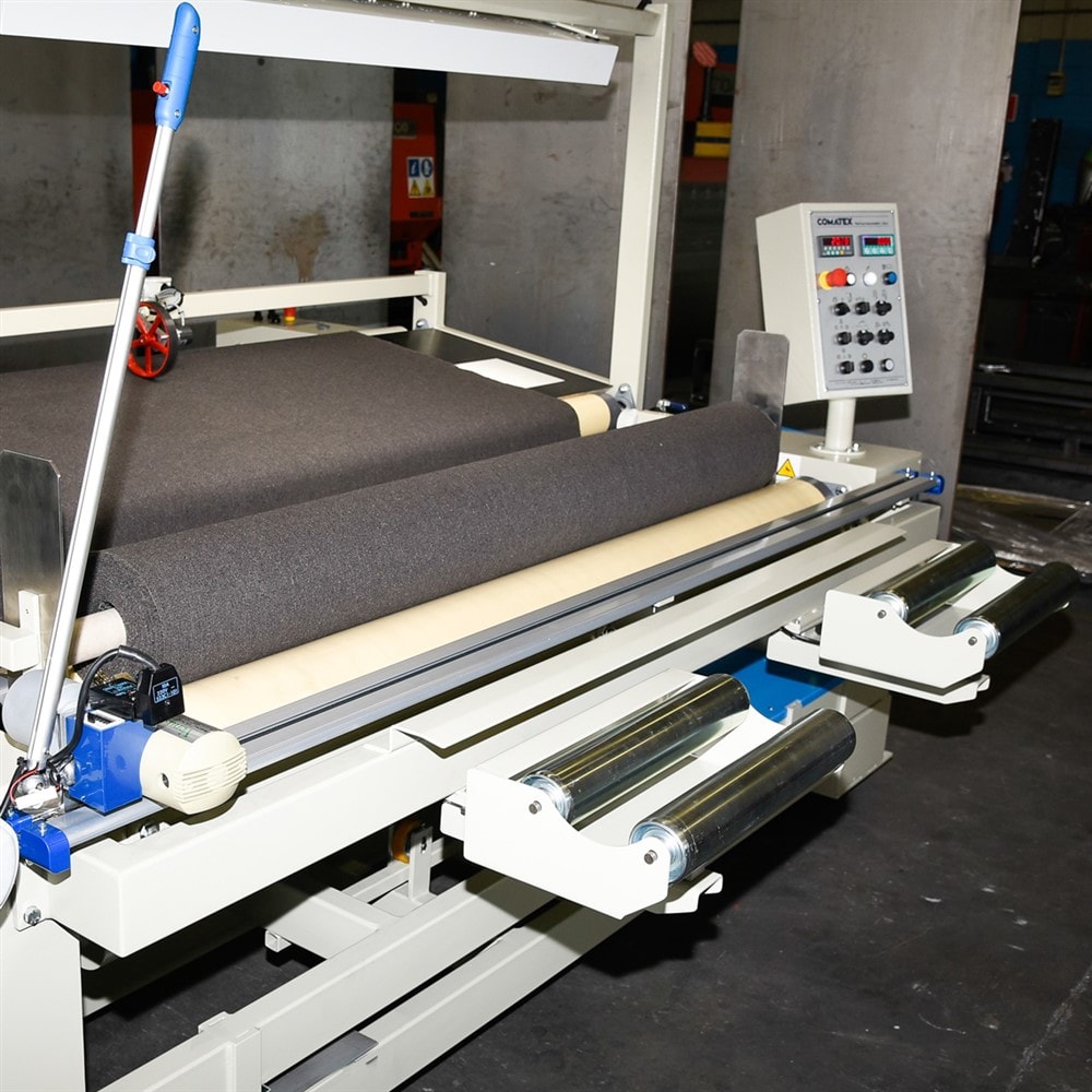 La macchina è dotata di tutti i sistemi allineamento del bordo, a un innovativo sistema contametri, che permettono di produrre rotoli tessuto di alta qualità con un ottimo controllo della tensione.