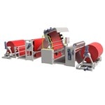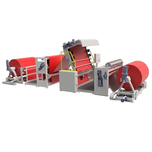 L’avvolgimento del rotolo alle spalle dell’operatore, può essere eseguito tangenzialmente su due rulli oppure assialmente su assi pneumatici.