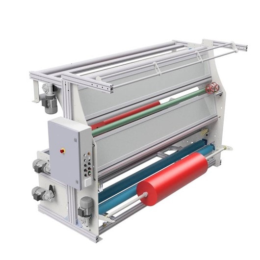 Il modello SP è dedicato apposta al maglifici che devono controllare il tessuto in aperto che rientra dalla tintoria, infatti è stato dotato dell'allineamento del bordo, e vari rulli allargatori per distendere le cimosse del tessuto.