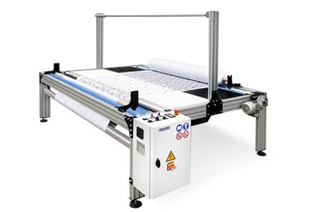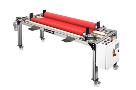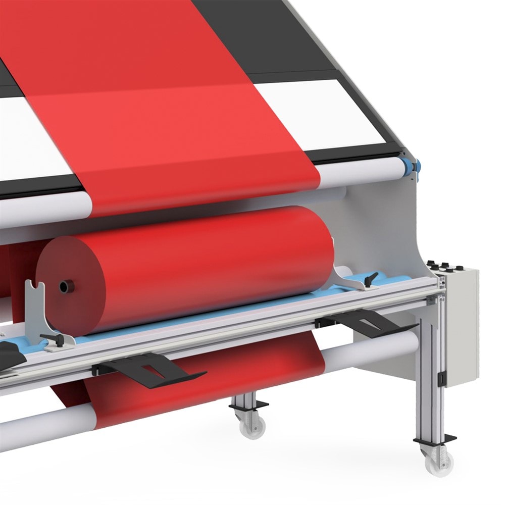 Il percorso molto breve e le paratie laterali permettono di riavvolgere il tessuto con il proprio allineamento.