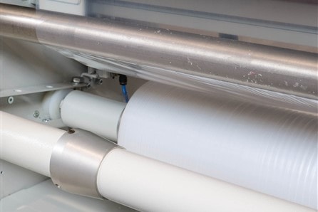 La barra di sostegno del polietilene permette di imballare comodamente il rotolo direttamente in macchina.