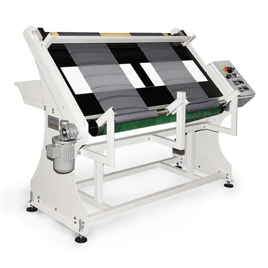 Lo svolgimento viene eseguito tramite un rullo di traino che pesca i colletti all’interno di una vasca che può contenere sia rotolini che tessuti faldati. Dal rullo di traino si scende su una tavola di ispezione composta solitamente da una zona luminosa circondata da delle zone di piano nero ideale per il contrasto.
