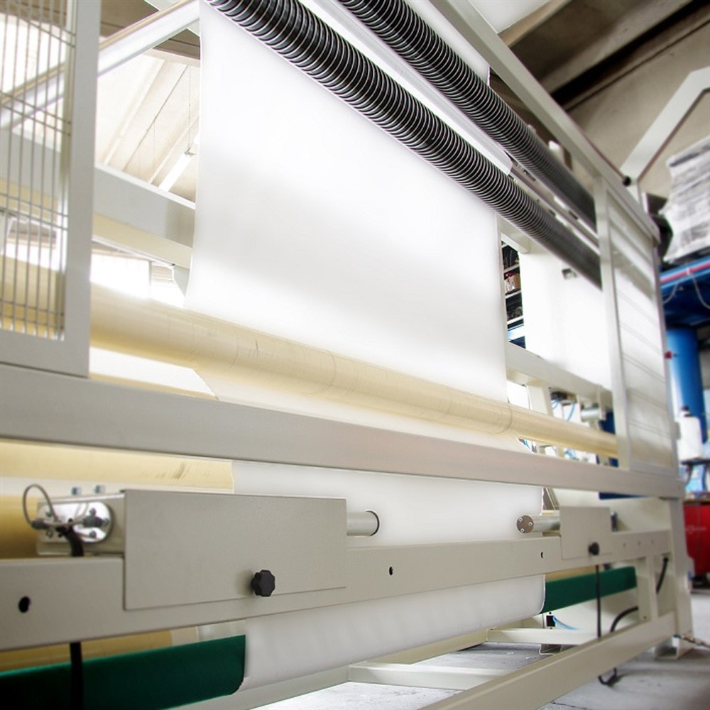 Dopo essere stato piegato, il tessuto viene trainato e avvolto in vari sistemi: avvolgimento tangenziale su due rulli o avvolgimento assiale su albero pneumatico (AIRBAR).