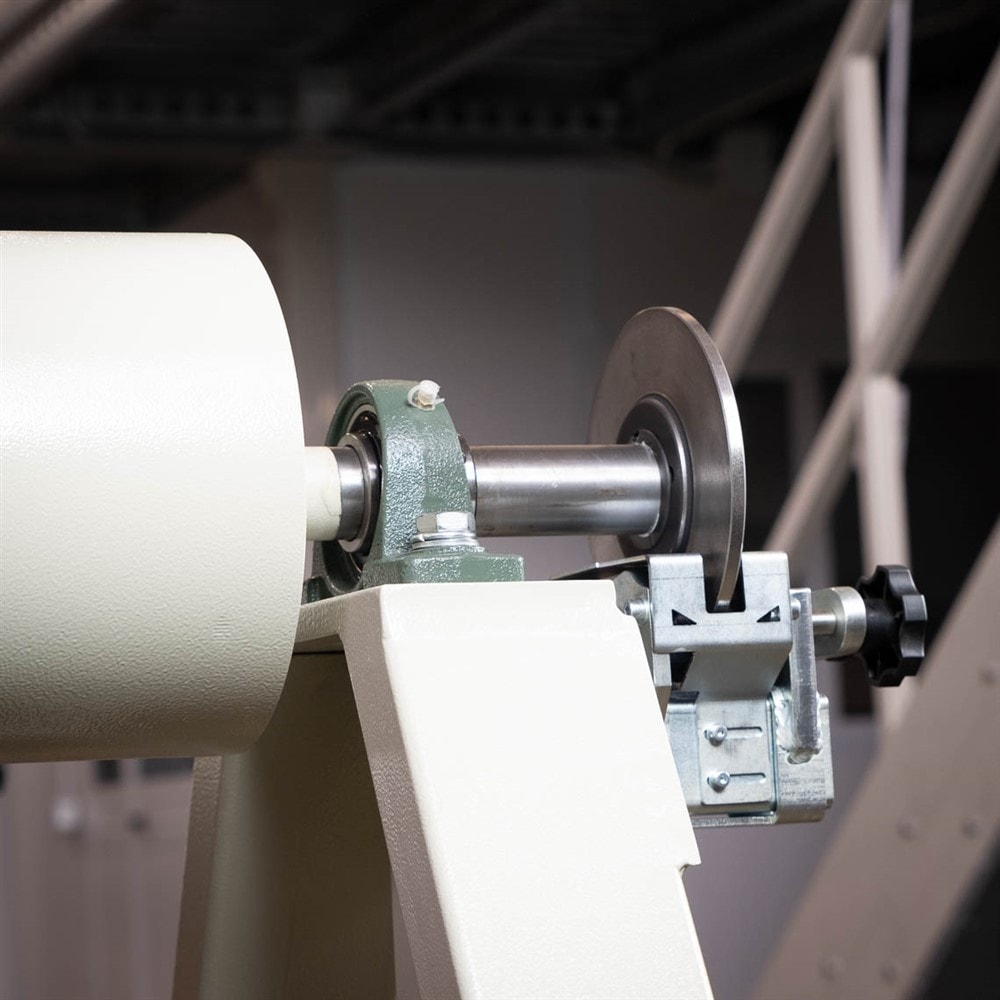 È disponibile, invece, un freno a comando manuale da montare in asse al rullo o all’albero espandibile, per poter frenare o frizionare la rotazione della bobina durante le varie operazioni.