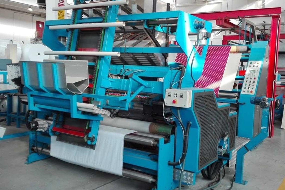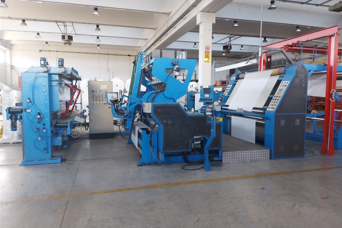 Macchina costruita in robusta carpenteria metallica , atta allo svolgimento e riavvolgimento in rotoli di materiali calandrati, estrusi , accoppiati e tessuti