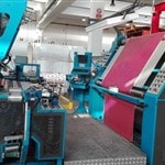 L'asportazione dei rifili ai lati della macchina avviene tramite speciali tappeti in materiale antistatico sostenuti da struttura in profilato di alluminio anticordal. La velocità di rotazione è incrementabile al variare della velocità della macchina .