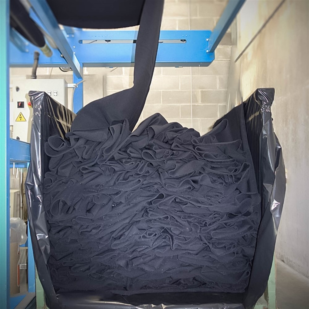 Lo sfrido viene aspirato e raccolto automaticamente direttamente in un cestino sotto la cucitrice, evita che l'operatore debba buttarlo a mano nel cestino ogni volta risparmiando fino 30 minuti al giorno (3 secondi a cucitura)