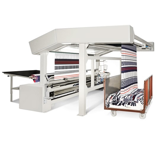 L'impianto viene fornito completo di testa cucitrice, con la quale (in base al modello scelto) è possibile cucire dalla maglia 30g/m2 fino a tessuti pesanti + 1500 g/m2