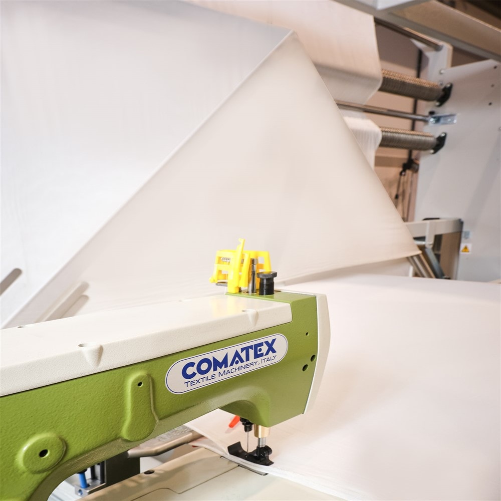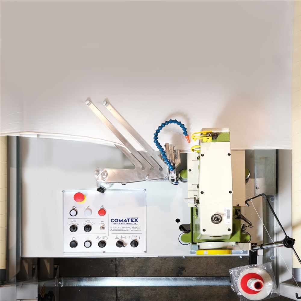 La macchina mod. CX EVO è uilizzata per preparare il tessuto alla tintura, esegue la doppiatura e la cucitura in forma di tubolare del tessuto tagliato e termofissato.
